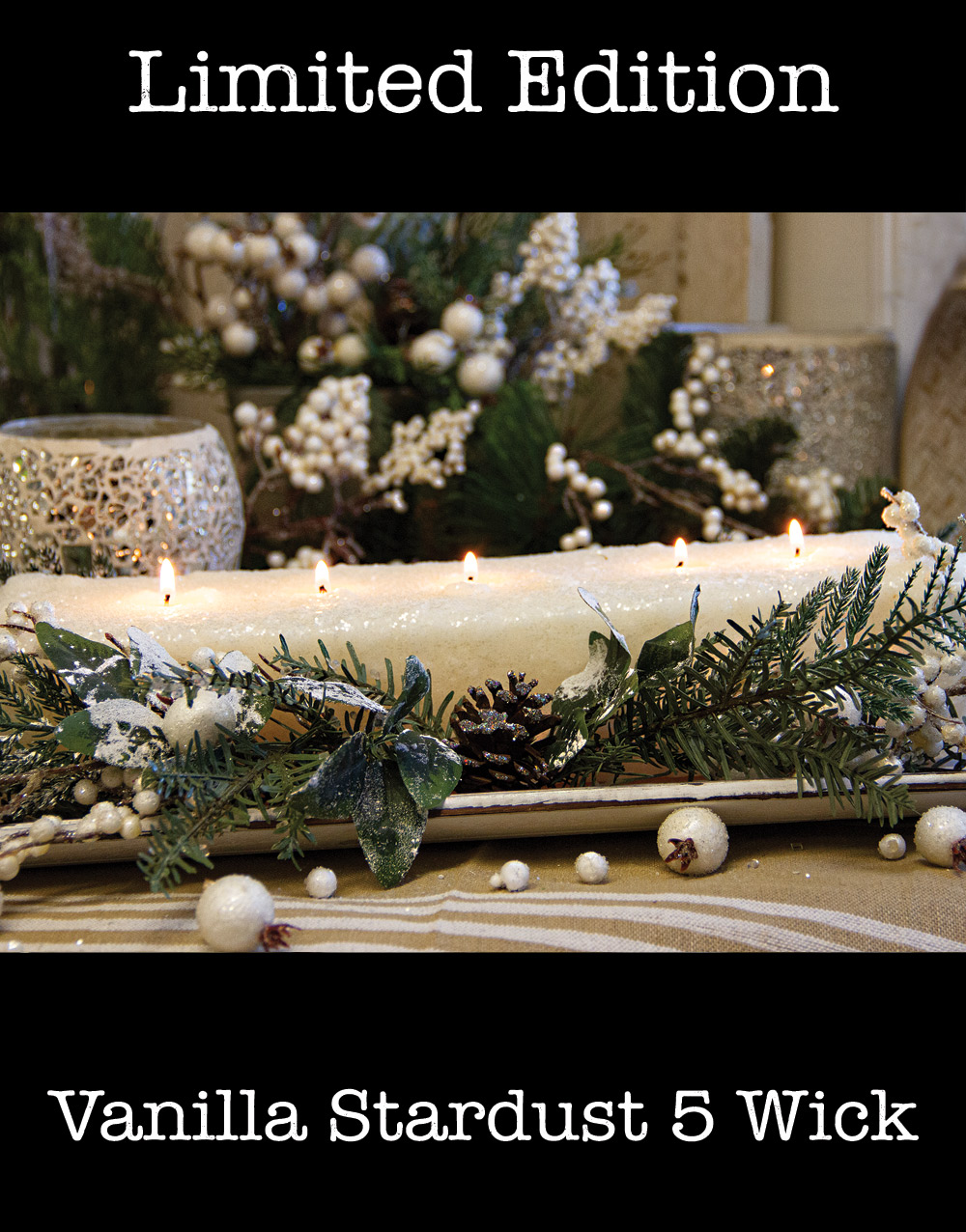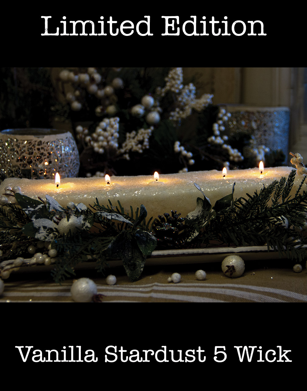 Add a little touch of magic to your holiday decorating with our Vanilla Stardust 5 Wick Loaf Candle!